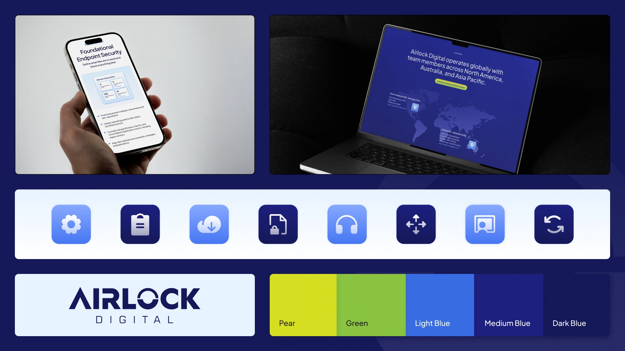 Ongoing visual design support for Airlock Digital, an enterprise cybersecurity company based in Australia. Working within an established design system, the project focused on evolving the brand's visual language across web, social, print, and event materials: moving toward a cleaner, more authoritative direction for a global enterprise audience.