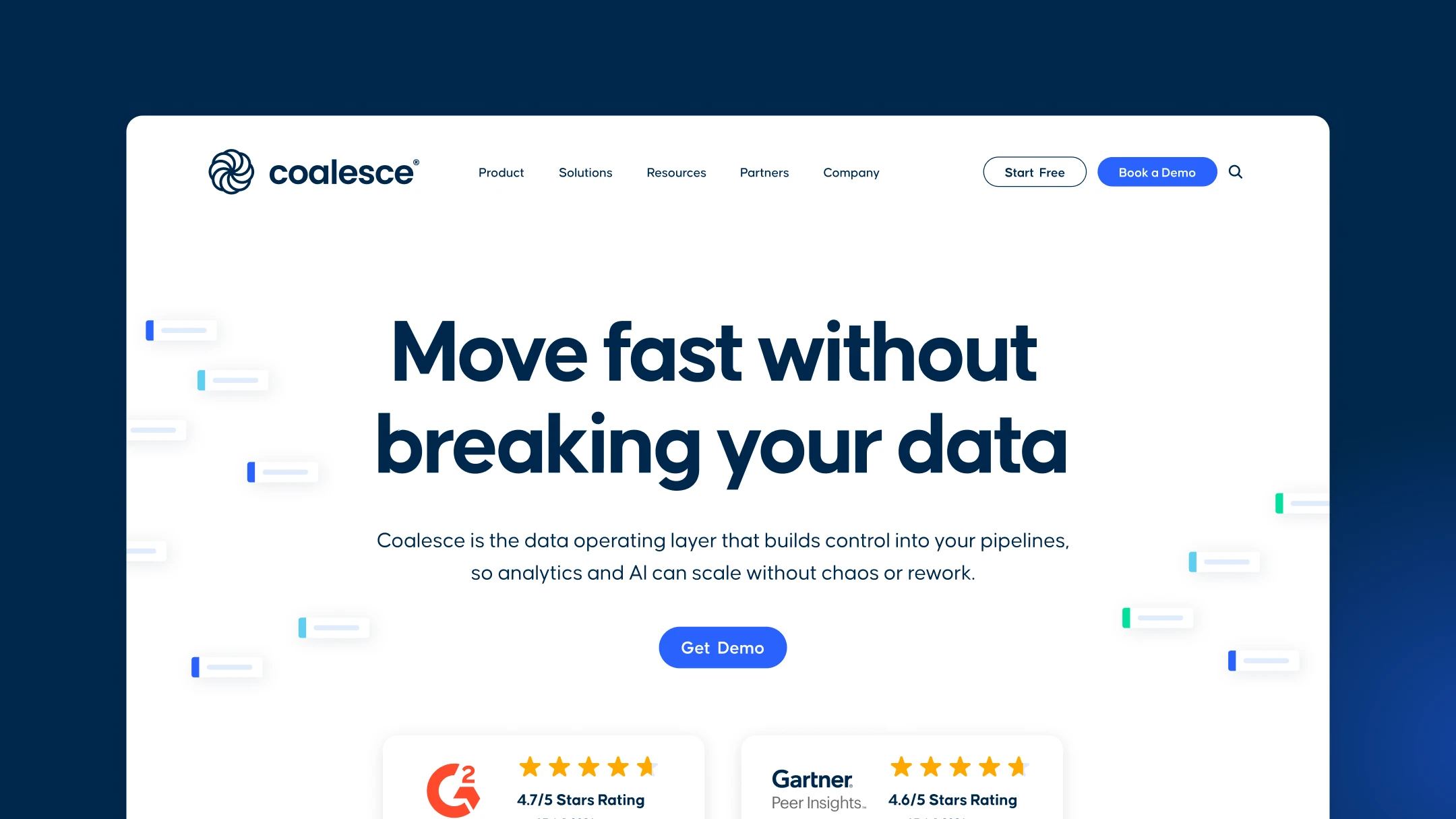 Visual design support for Coalesce, a B2B data transformation platform built for data teams. Working within an established brand system, the work spans web pages, social content, event materials, slide decks, and resource library assets, keeping the brand consistent and current as the company scales.