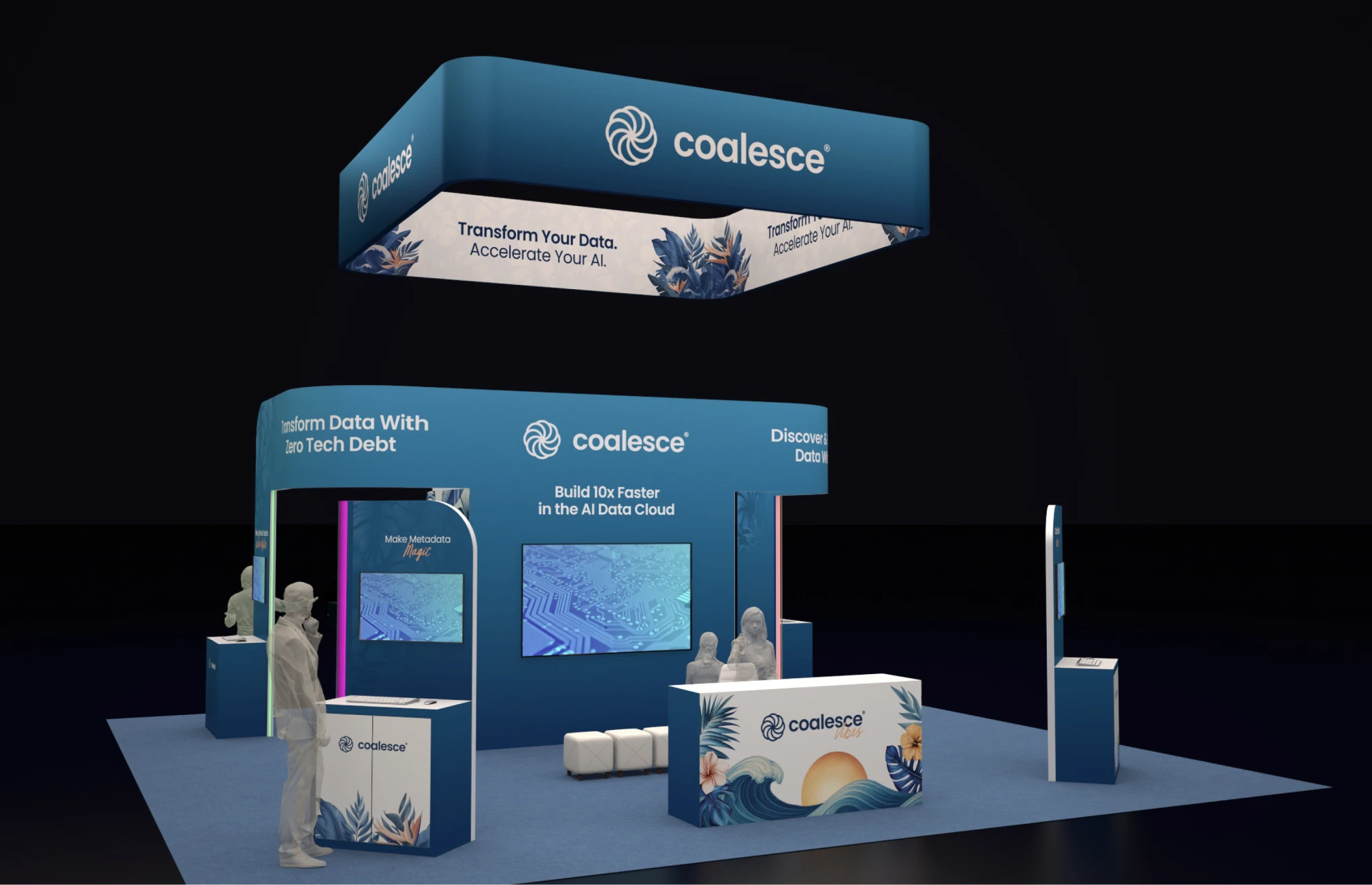 Coalesce had a defined brand identity and a clear product vision. The design challenge was not reinvention but execution: applying a flexible visual system consistently across a growing range of touchpoints, from website pages and campaign assets to trade show booths and presentation decks.